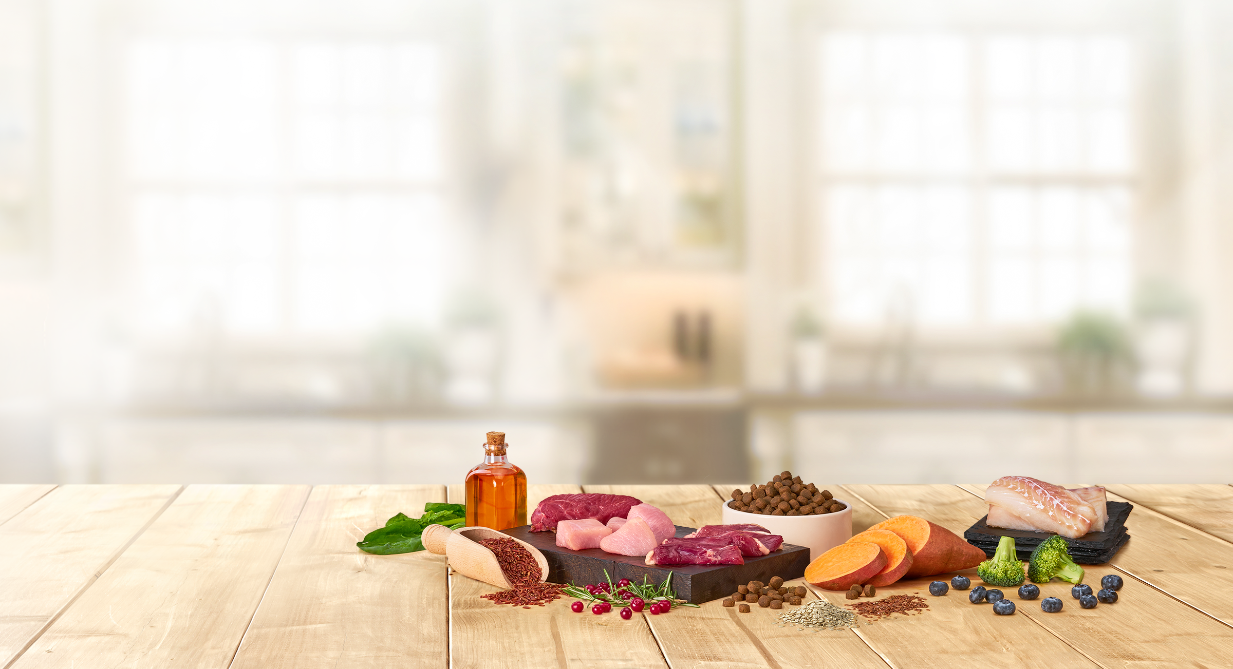Φρέσκο κρέας γαλοπούλας (26%), Αφυδατωμένο κρέας γαλοπούλας (18%), Γλυκοπατάτα, Μπιζέλια, Λίπος γαλοπούλας (6%), Πατάτα, Σκόνη ρίζας κιχωρίου (φυσική πηγή πρεβιοτικών: FOS και ινουλίνη), Μέταλλα, Λιναρόσπορος, Μήλα, Καρότα, Μαγιά μπύρας (φυσική πηγή MOS και β-γλυκάνες), Λάδι σολομού (1%), Κράνμπερι, Μύρτιλα, Μπρόκολο, Σπανάκι, Ντομάτες, Υδροχλωρική γλυκοζαμίνη (100 mg/kg), Θειική χονδροϊτίνη (100 mg/kg), Yucca Schidigera, Γκρέιπφρουτ, Δεντρολίβανο, Κουρκουμάς.