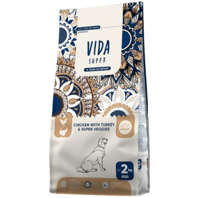 Vida Super Dog Chicken, Turkey & Veggies Adult Medium/Large Ξηρά Τροφή για ΕνήλικουςΣκύλους Μεσαίων και Μεγαλόσωμων Φυλών με Καλαμπόκι, Σιτάρι και Πρωτεϊνη Κοτόπουλου 12 kgr