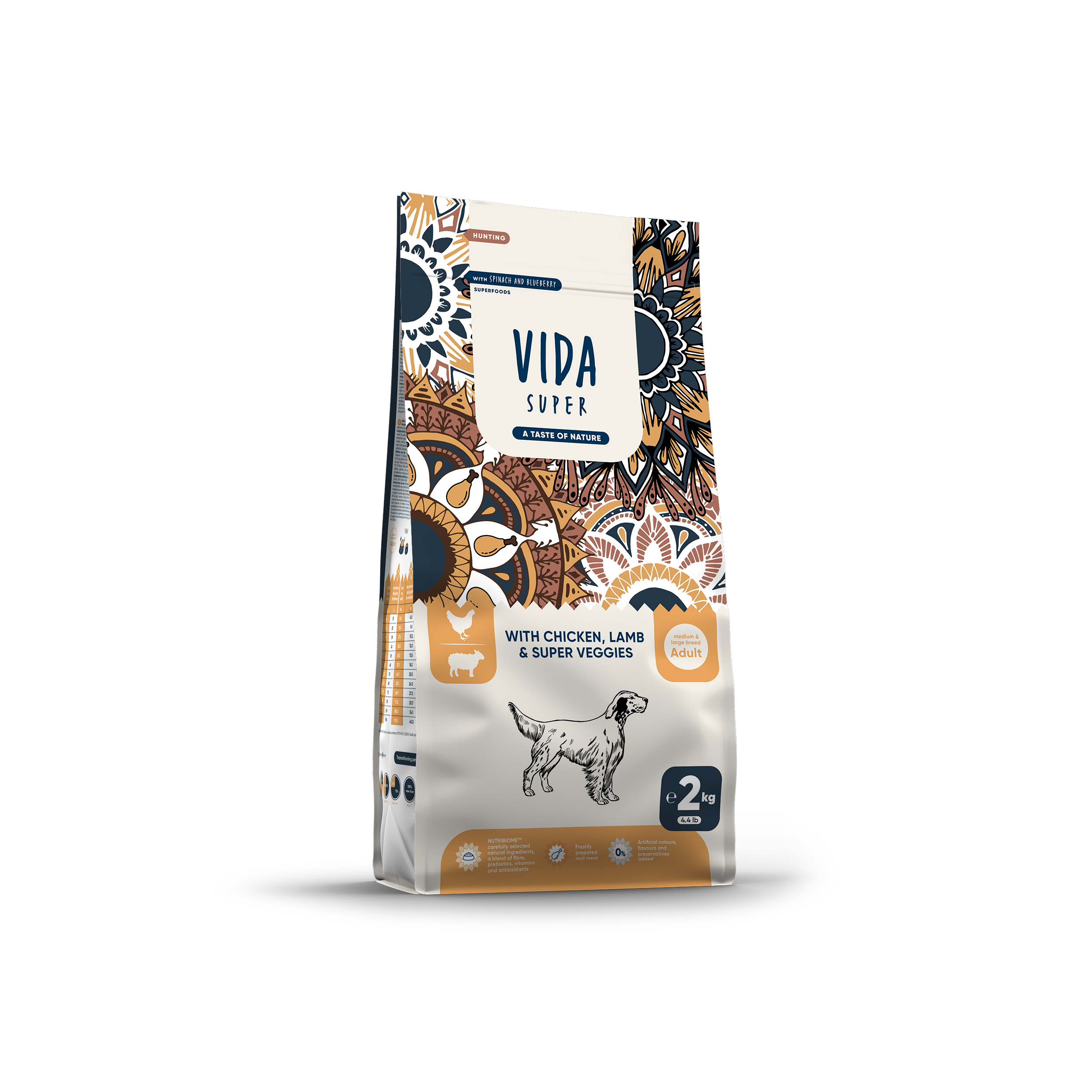 Vida Super Dog Hunt Chicken, Lamb & Veggies Adult Medium/Large Ξηρά Τροφή για ΕνήλικουςΣκύλους Μεσαίων και Μεγαλόσωμων Φυλών με Καλαμπόκι, Σιτάρι και Πρωτεϊνη Κοτόπουλου 2 kgr